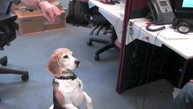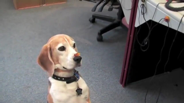 「よし!」と同時にすかさずオヤツを食べる動きは見事なもの。でも、二度目のオヤツはこっそり後ろから取られてしまって……。