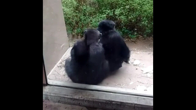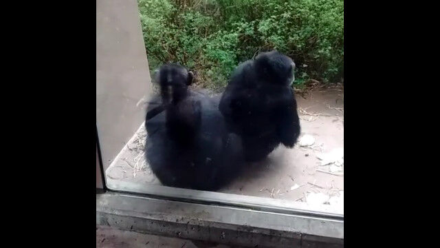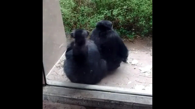 メトロノームかな?なぜか左右に揺れ動き続けるサル2匹
