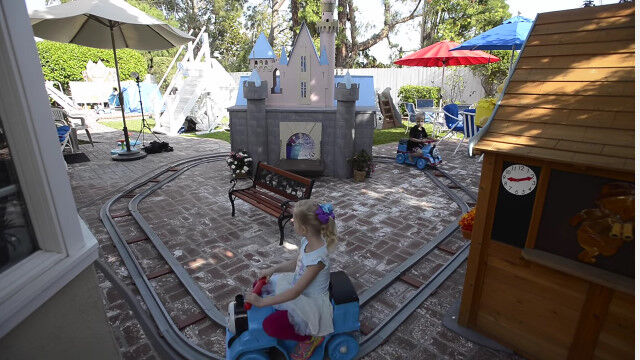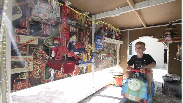 ボーイング社の元エンジニア、スティーブン・ダブズさんがかわいい孫や友人たちを喜ばせるために裏庭に作った、ディズニーランド風の小さな遊園地。