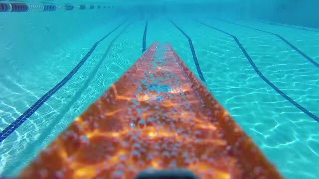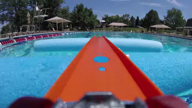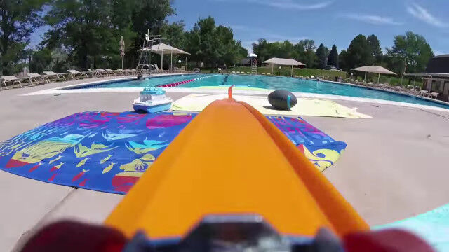 途中のトンネルでいくつかのコースをつなぎあわせた映像で、縦ループしたりジャンプしたり、プールの仲間で走ってしまったりと、なかなか凝っていて面白い。