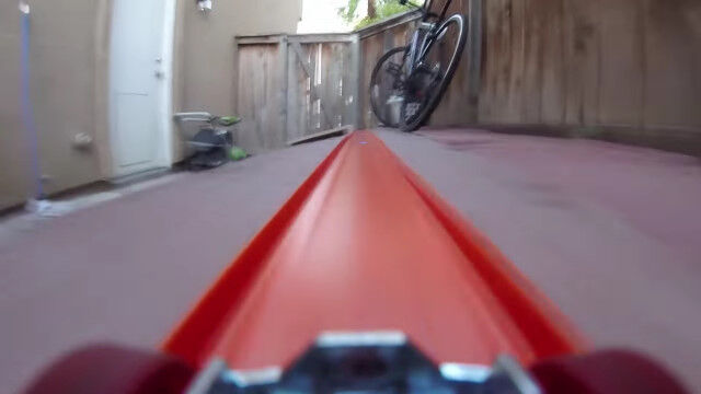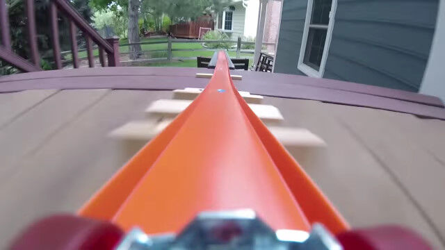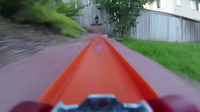 オモチャの車、ホットウィールのレールを自宅敷地内やその周辺に敷き詰め、ホットウィールに搭載したカメラで撮影した主観映像。
