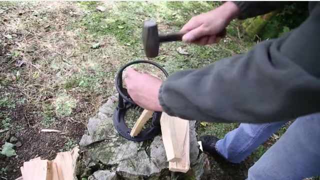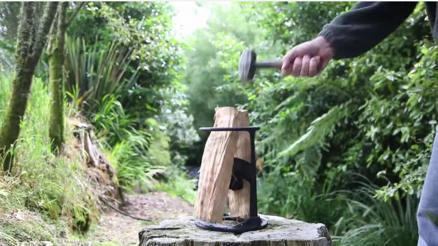 丸太を薪にするという結果は変わらないし、斧を振るわずに済むため安全性も高く、小さなハンマーや薪そのもので叩いてもいいのでお手軽。