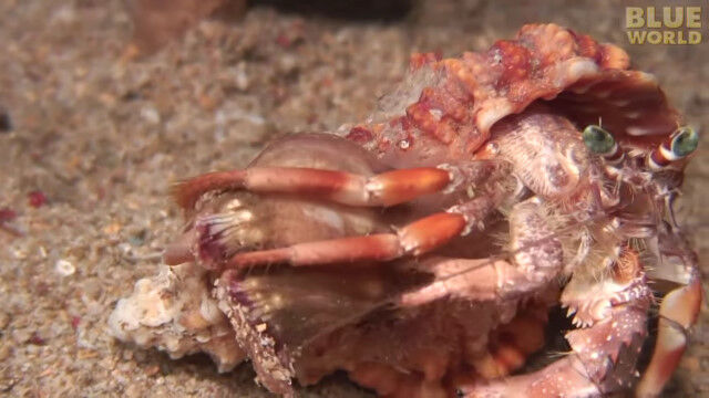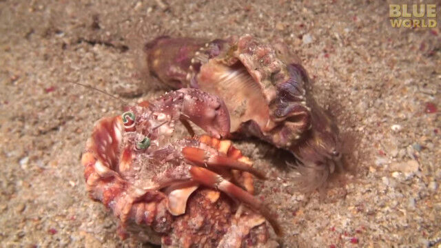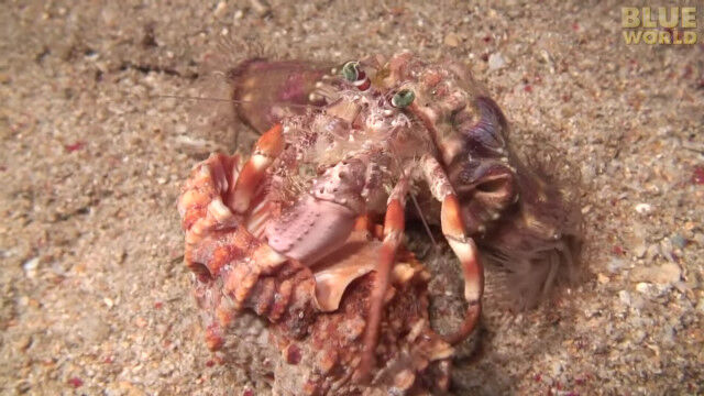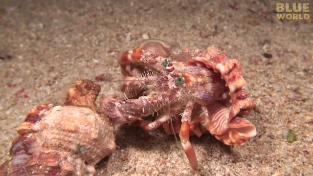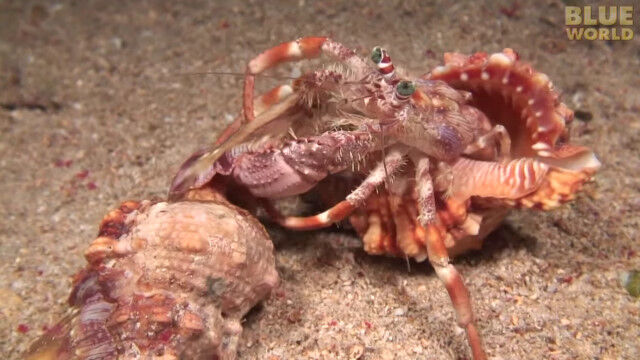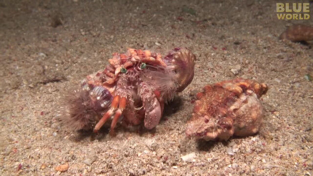 Incredible footage of hermit crab changing shells with anemones!