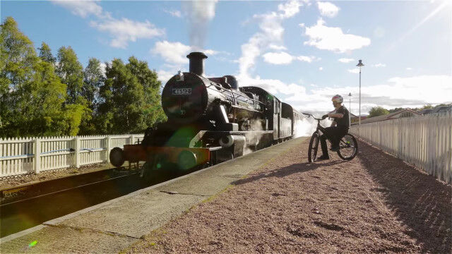 廃線、廃駅、廃列車を跳び渡るDanny MacAskillのバイクトライアル映像