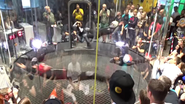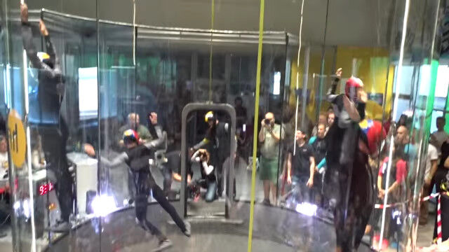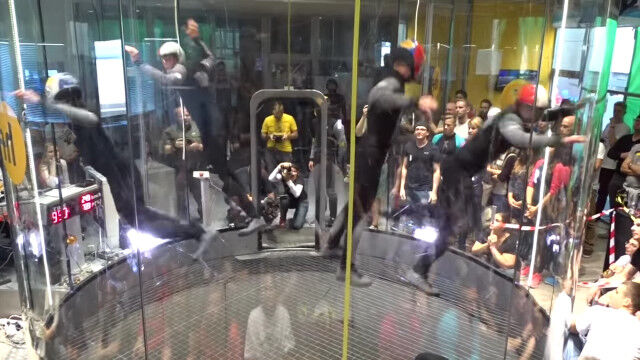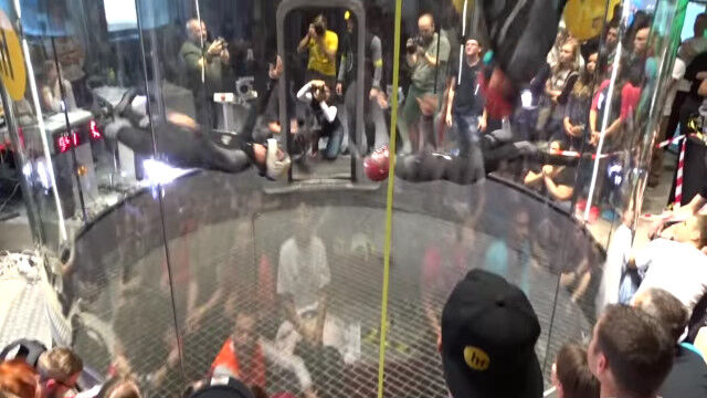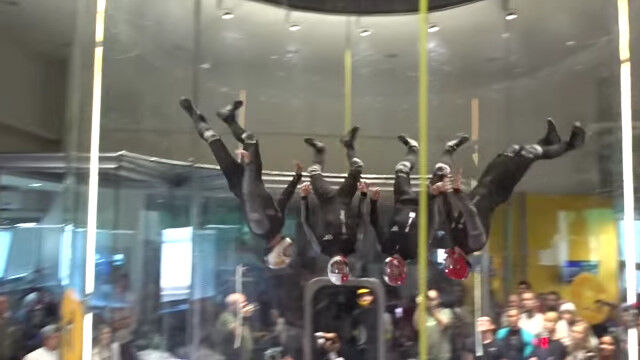 4人の男が宙を舞う!シンクロナイズド・インドアスカイダイビング