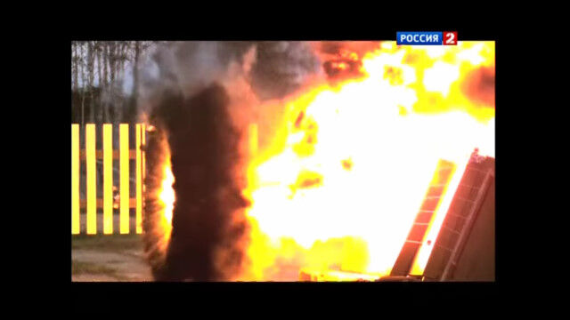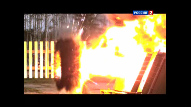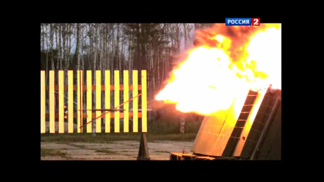 対戦車ロケットや誘導ミサイルなどに反応し、衝突寸前に飛来物に対して炸裂、爆破させるロシアのアクティブ防護システム「アリーナ」を作動させたテスト映像。