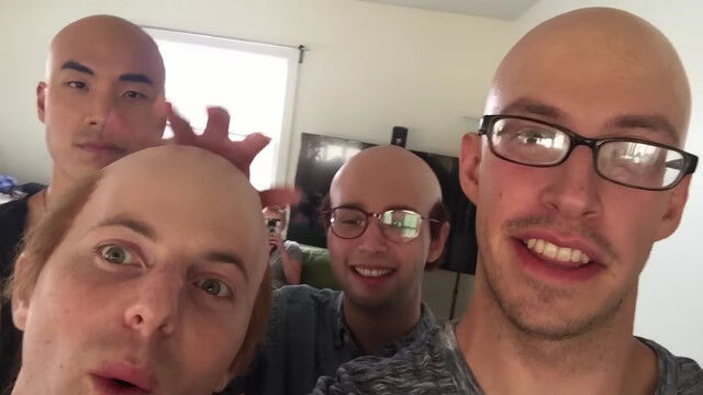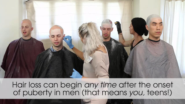 まだかろうじてハゲきっていない男4人が、特殊メイクで大幅に禿げている頭髪を体験してみた映像。