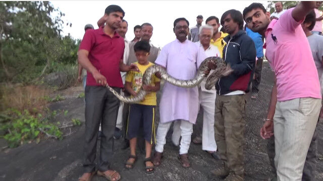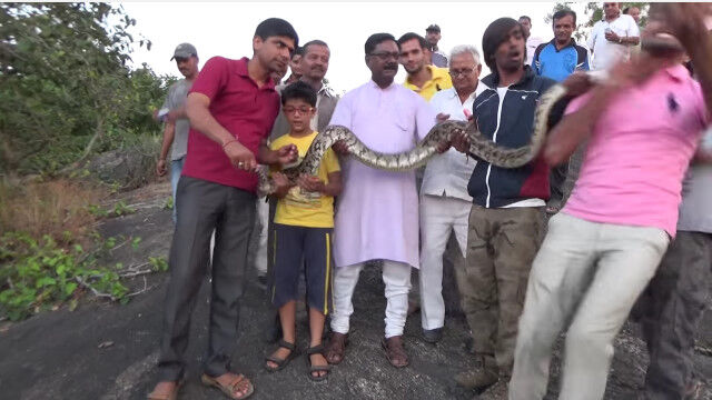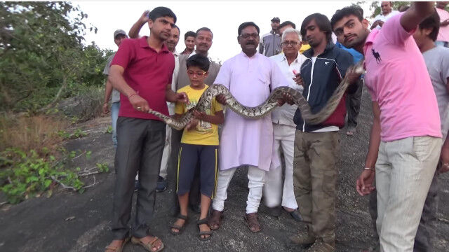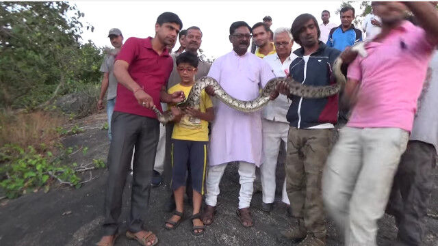 - 捕獲した大蛇と一緒に「はいチーズ!」……の油断大敵な瞬間 $ArticleTagsLoop$>
