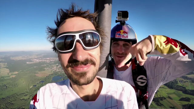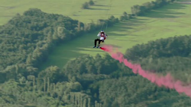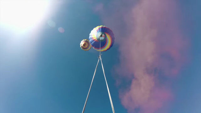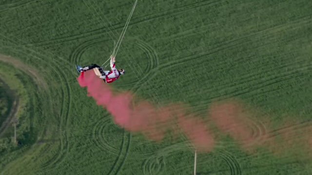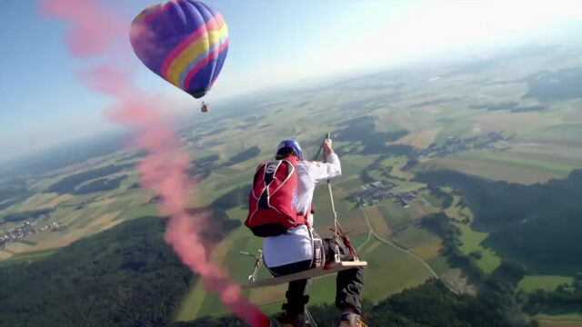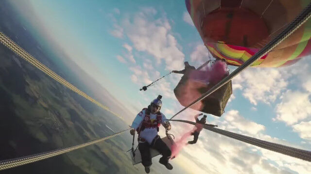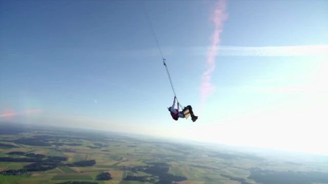 気球からぶら下げた、高高度でのブランコを楽しむスカイダイバーたちの映像。