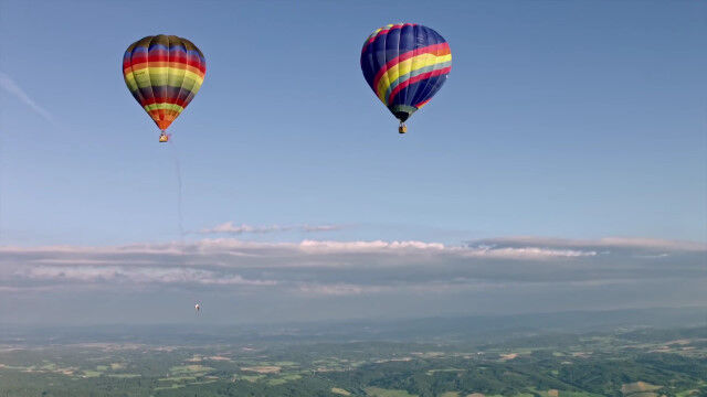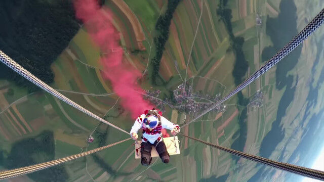 怖いけど楽しそう!2つの熱気球の間にロープを張ってのエクストリーム綱渡り