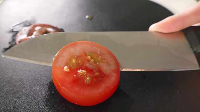 トマトはもうちょっとぬるぬる切れるのかと思ったら意外に刃が入っていかないのね