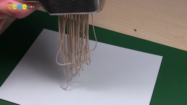 指先にちょこんと乗るサイズの、ミニチュア年越しそばを作る工程を紹介した映像。