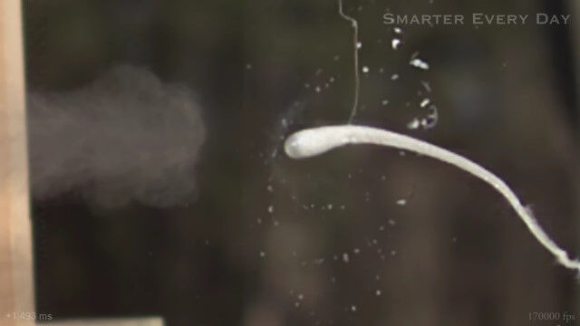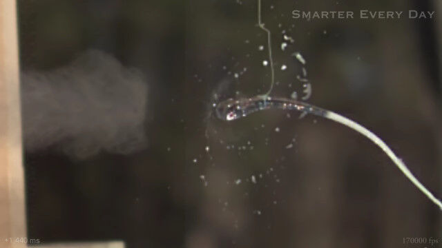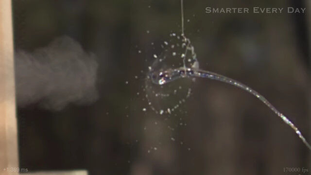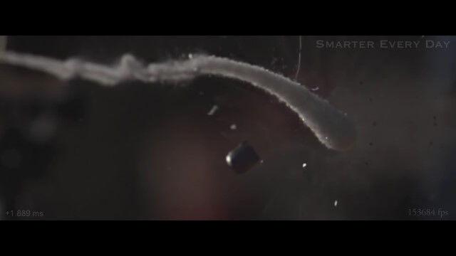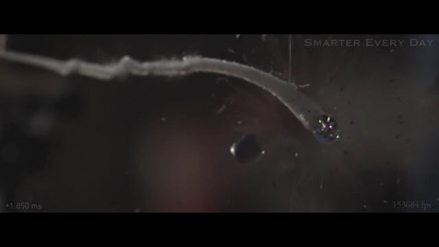 「プリンス・ラパートの滴」、あるいは「オランダの涙」と呼ばれる不思議な特性を持つガラスを、ふたたびハイスピードカメラで撮影したダスティンさん。