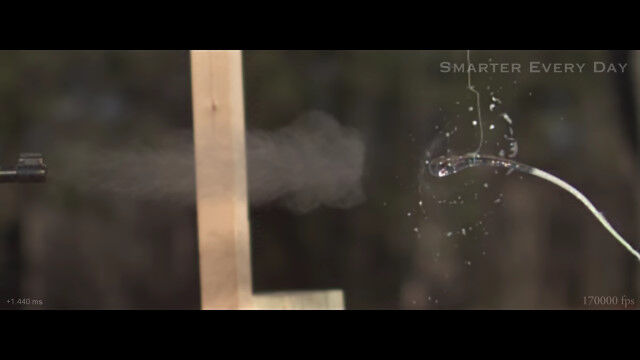 今回は22口径のライフルで撃ち抜く瞬間を撮影。