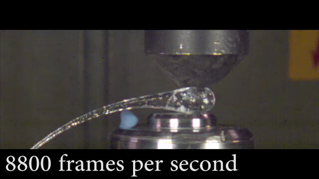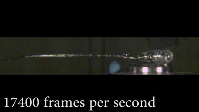不思議な特性を持つガラス「プリンス・ラパートの滴」を銃弾で撃ち抜く瞬間の超スローモーション映像