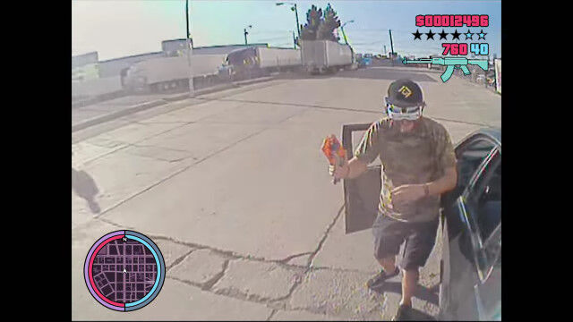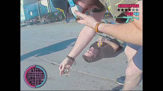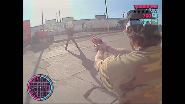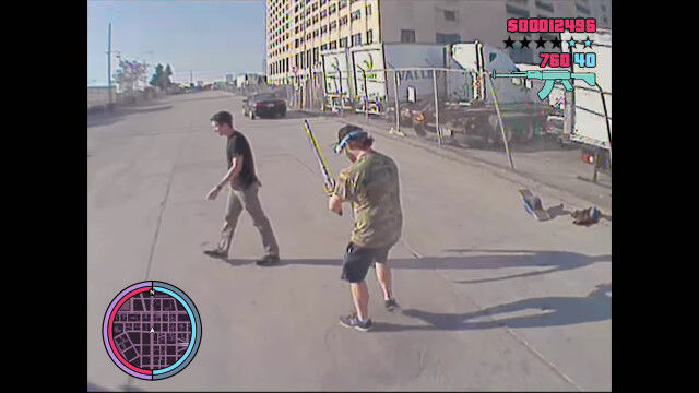 第三者視点でプレイするゲーム「グランド・セフト・オート」のような状態を現実世界で体験してみた映像。