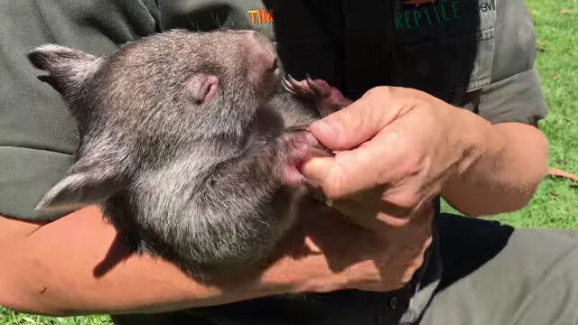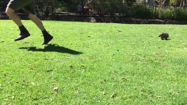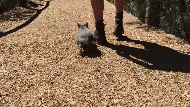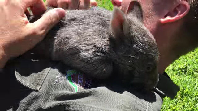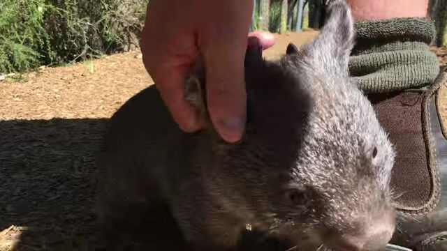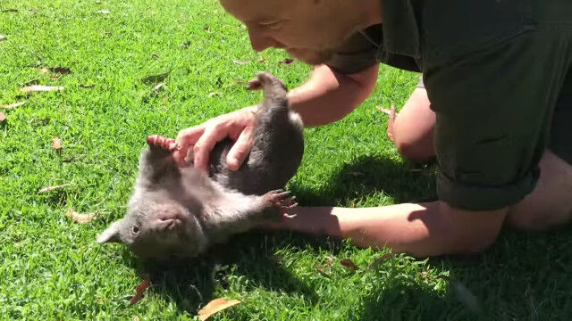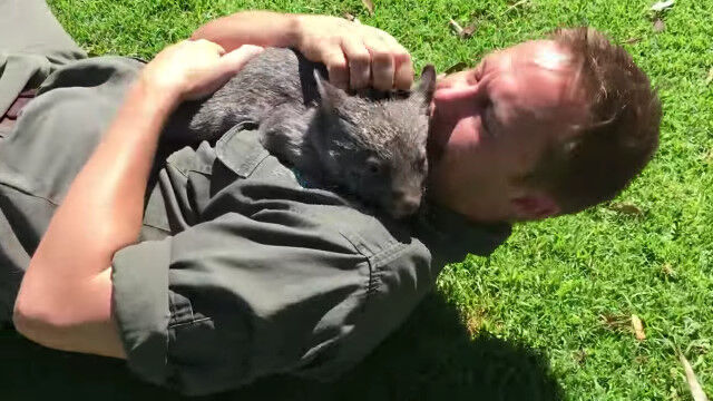 意外と素早くて人懐っこい、赤ちゃんウォンバットと戯れる