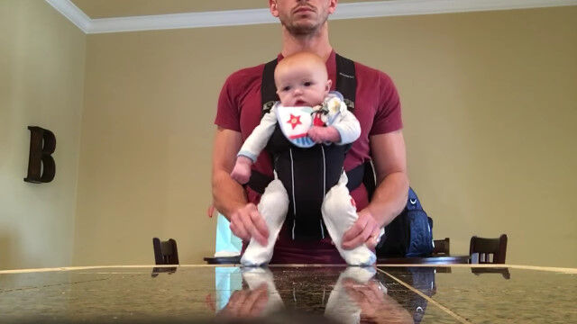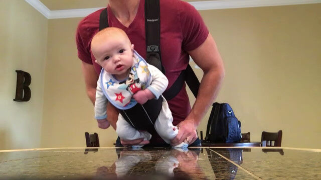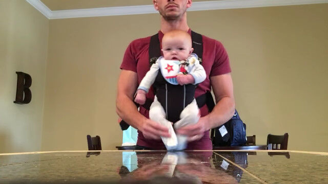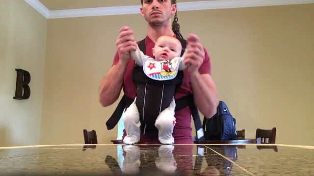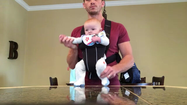 暇を持て余した彼が思いつたのは、抱っこひもで抱えたマイルスくんを操り、マイケル・ジャクソンのごときダンスを踊らせてみること。
