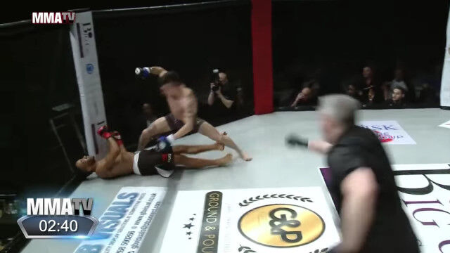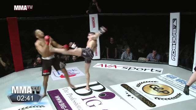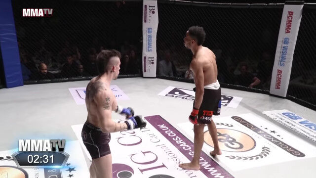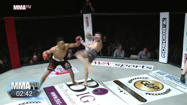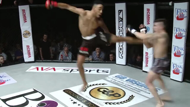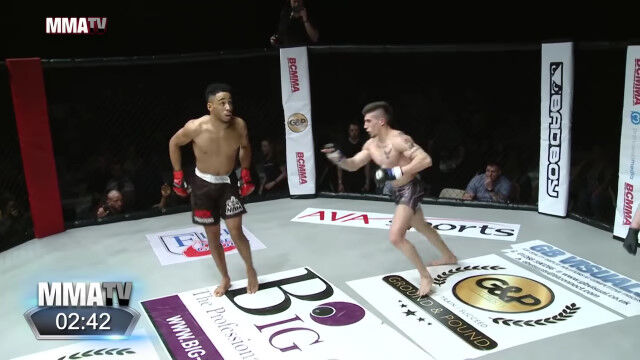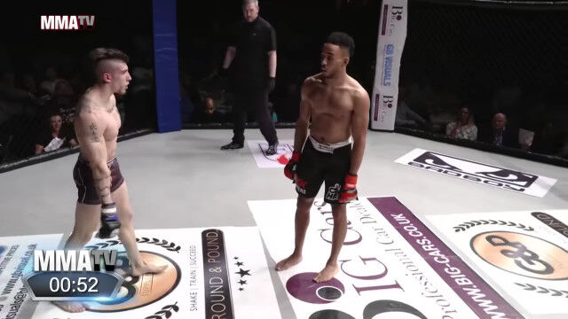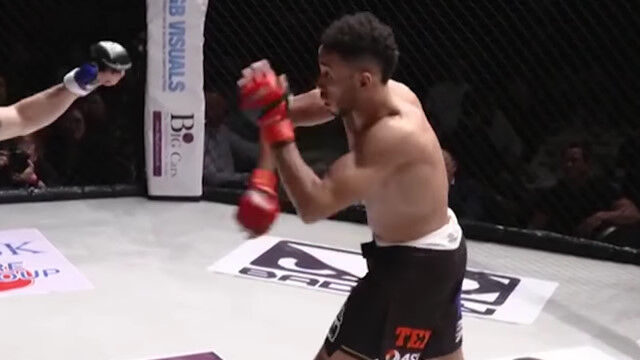 総合格闘技の試合にて、対戦相手のヨハネ・セガに対して挑発行為を繰り返すジョー・ハーディング。