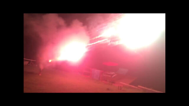 毎年2チームに分かれて2万発のロケット花火打ち合いしてるが