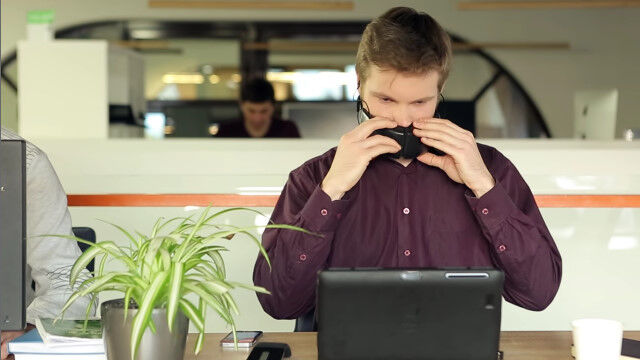 Hushmeはスマートフォンと同期させることで、周囲の人に聞かれることなく通話できるマスク型のデバイス。