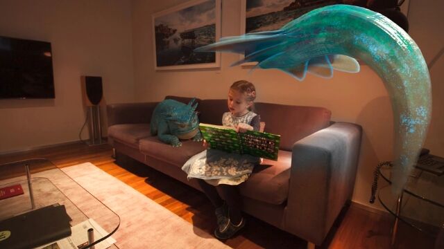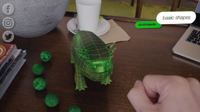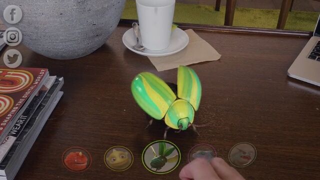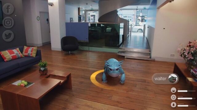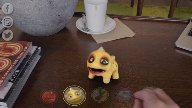 拡張現実で表示されるペットは、形状や色をカスタマイズできて、餌を与えたり、オモチャで一緒に遊ぶことができる。