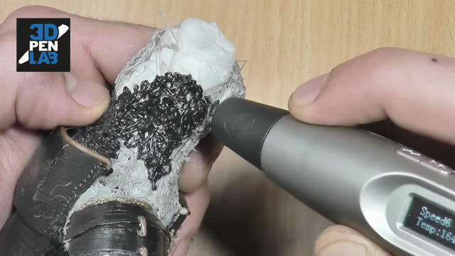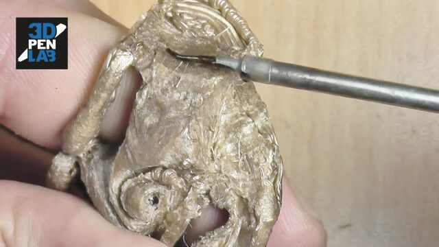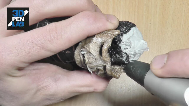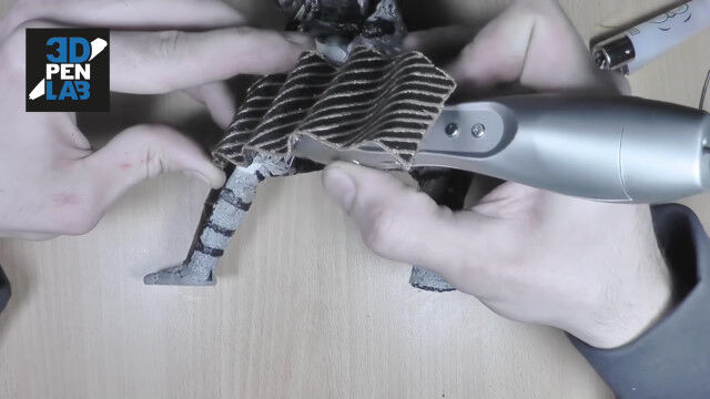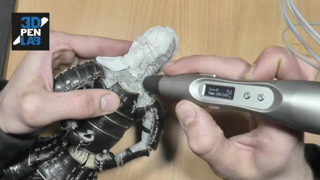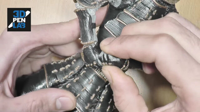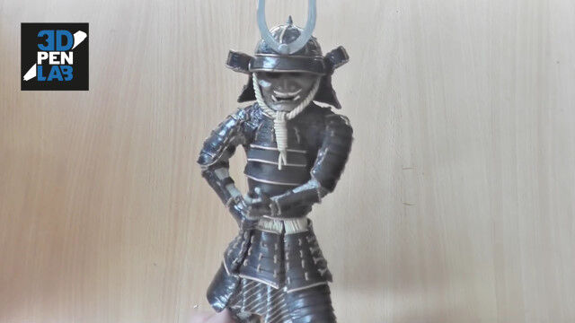 立体的なものを造形できる3Dペンを使い、鎧武者を作り上げる早回し映像。
