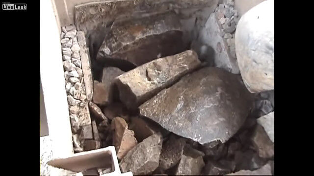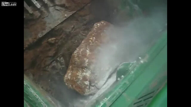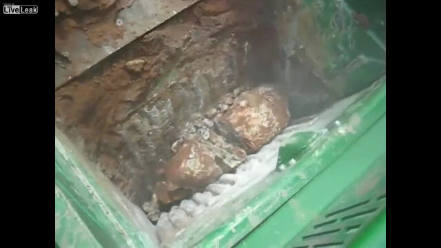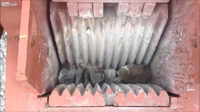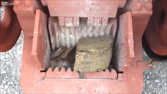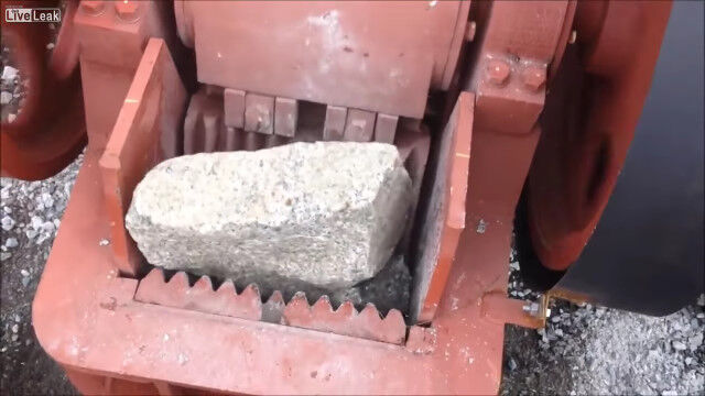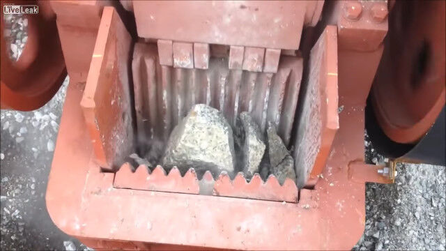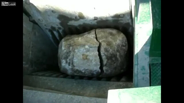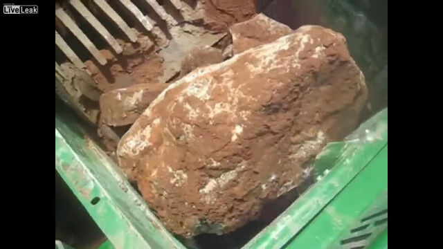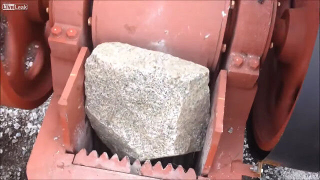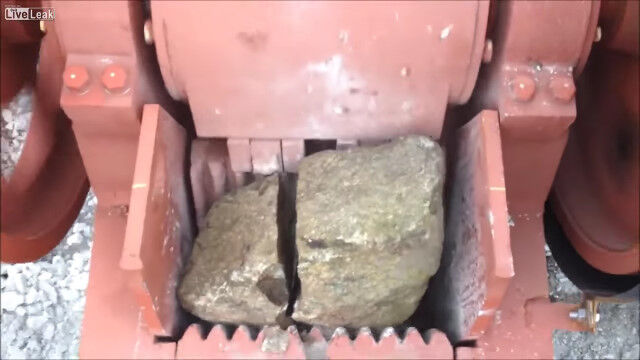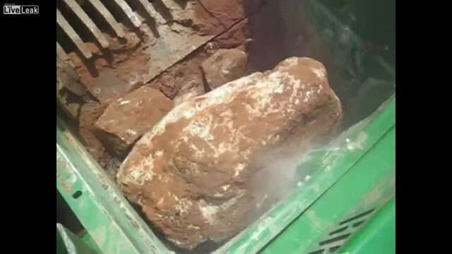 岩を砕いて適度な大きさの石へと変える、破砕機の仕事っぷりを紹介した映像。