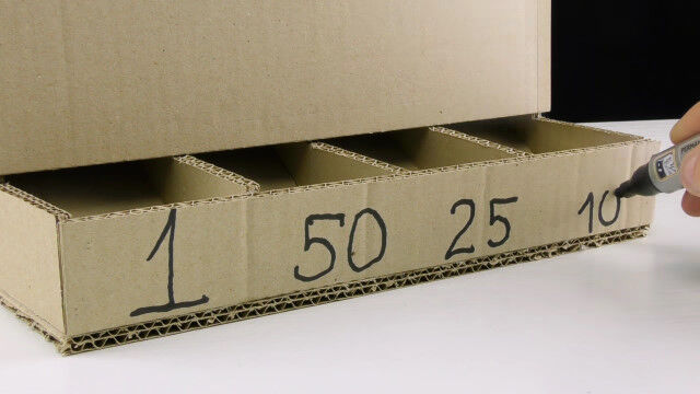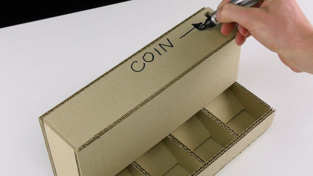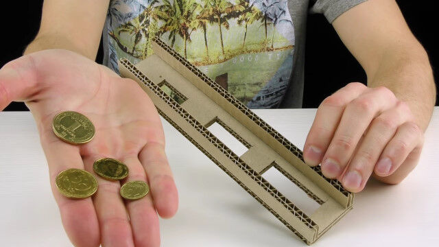 - ダンボールで手作りした、硬貨を振り分けるコインソート・マシン $ArticleTagsLoop$>