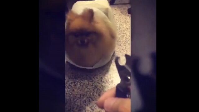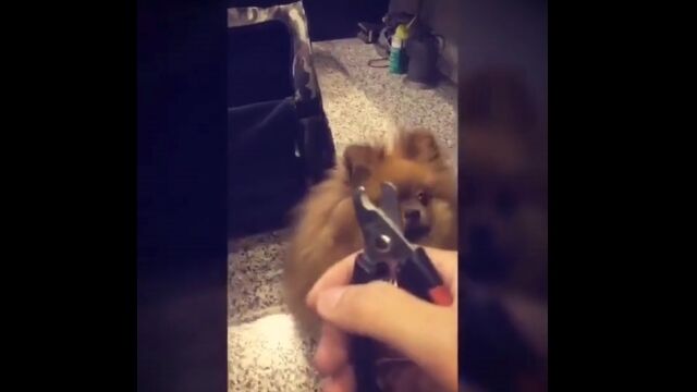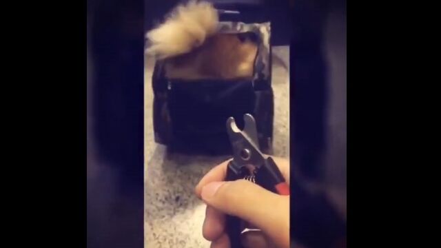 過去に痛い思いでもしてしまったのか、爪切りを目にすると急いで身を隠す犬。