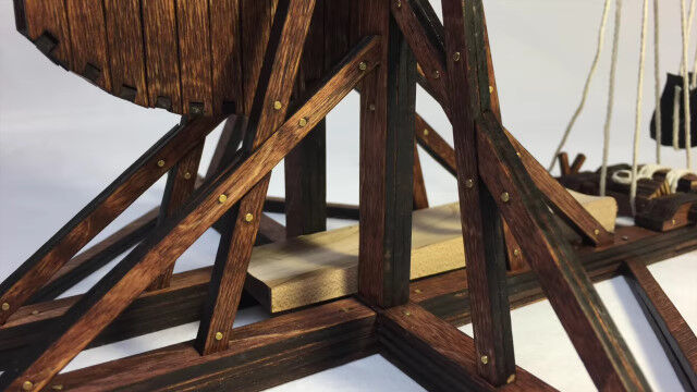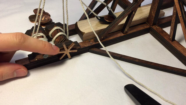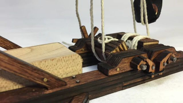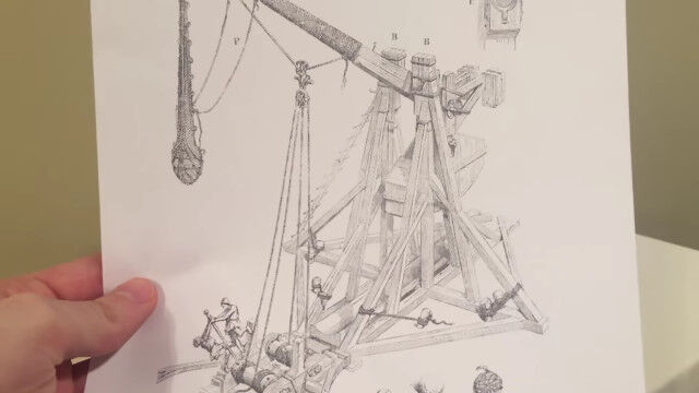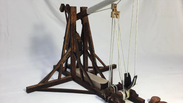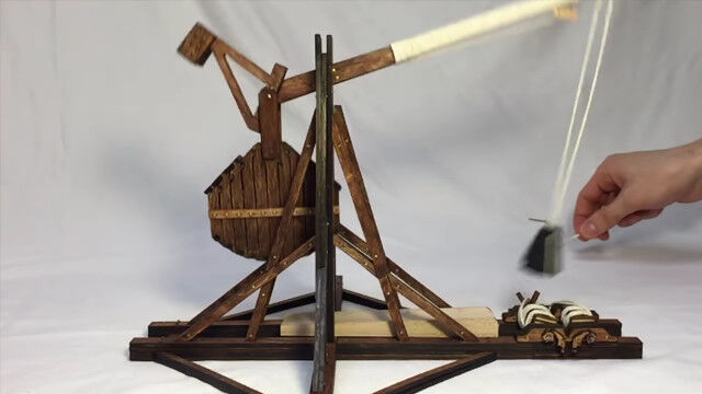 城や砦を攻め落とすための古代の攻城兵器、トレビュシェット(平衡錘投石機)を小型化したキット「Trebbers」を組み立てる様子と、実際に使用してみた映像。