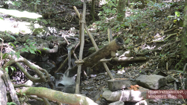 受け皿をもっと深くしたほうがいいような気がするけど、作業を勝手にやってくれる装置は原始生活においても重要だよね。