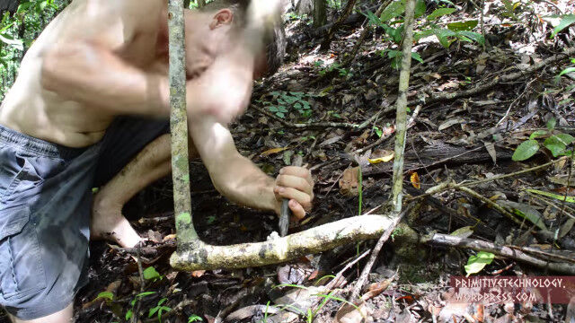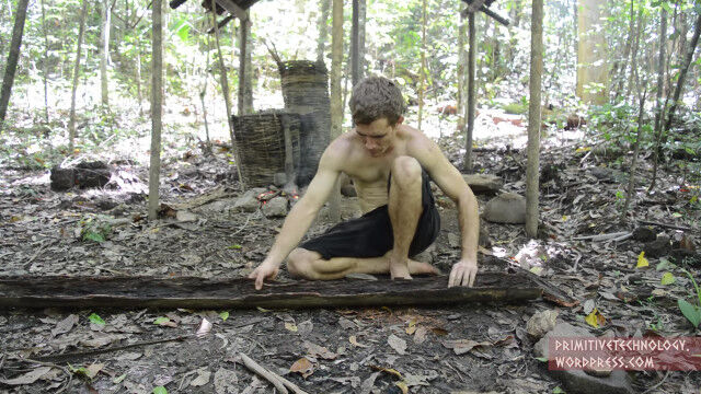 原始生活お兄さん、やり投げを補助する投槍器と槍を作り、槍投げ訓練を繰り返す
