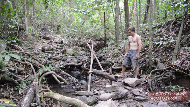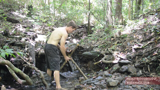 原始生活お兄さん、罠カゴを作って川エビを捕獲し、食す