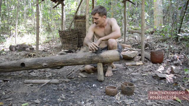 趣味として原始生活を営み、工具や土器、窯に瓦屋根の家まで作り上げてしまうお兄さんが、ついに作業工程を自動化する装置を製作。