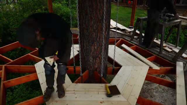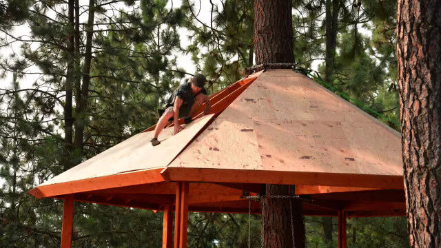 大の大人が約6ヶ月かけて、数人がかりで作り上げたツリーハウスの建築早回し映像。