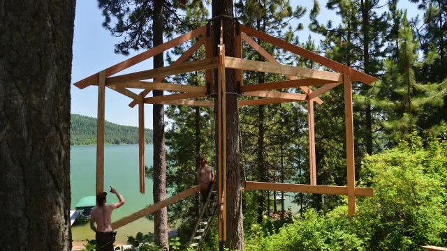 - 大の大人が半年かけて、数人がかりで本気のツリーハウスを建てる早回し� $ArticleTagsLoop$>