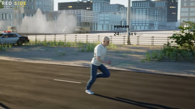 人間が走る平均的な速度や、ウサイン・ボルトの全速力、チーターの最高速などはわかりやすくするために配置。