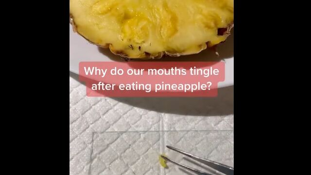 パイナップルを食べると口の中がヒリヒリしたりチクチクしたり、酷い時にはかなりの痛みを伴うこともある。