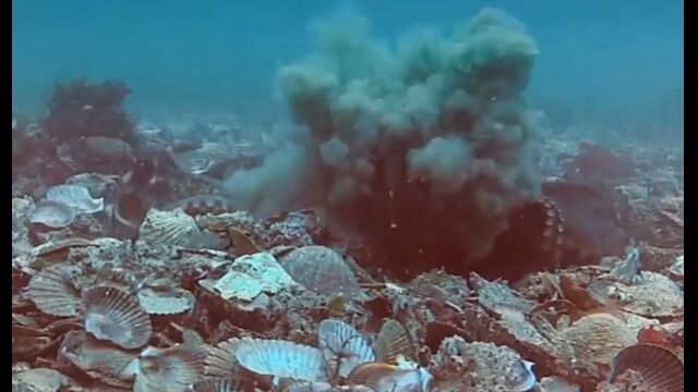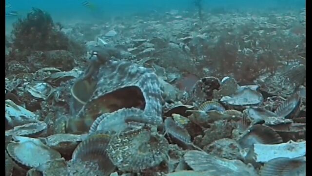 Two gloomy octopuses (actual species name) involved in a kerfuffle as they throw silt and shells at each other, Jervis Bay, Australia by u/KimCureAll in BeAmazed
