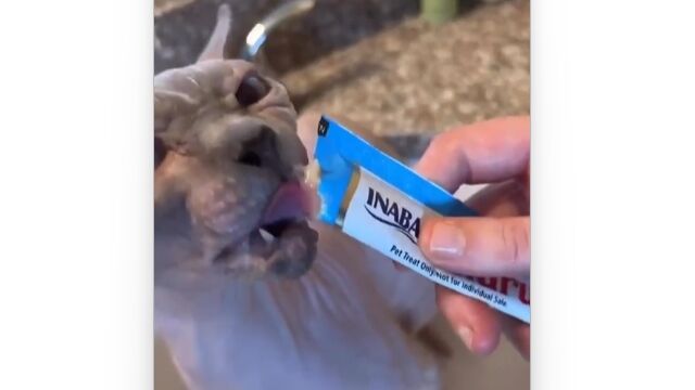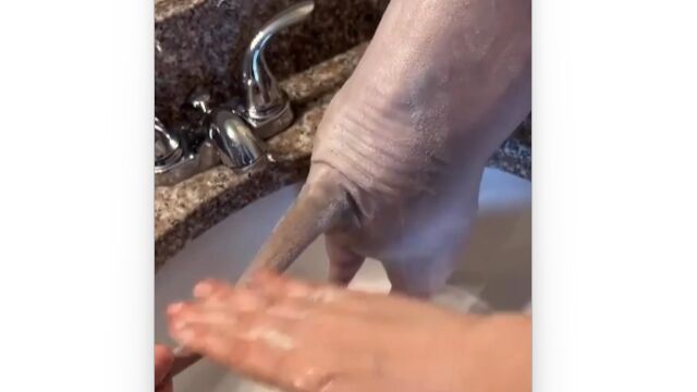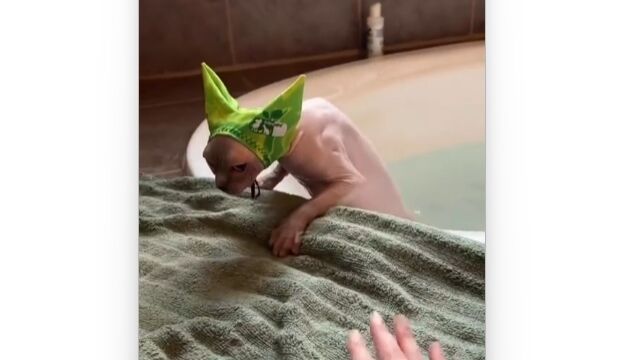 艶めかしくも興味深い、毛のない猫のお風呂タイム