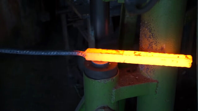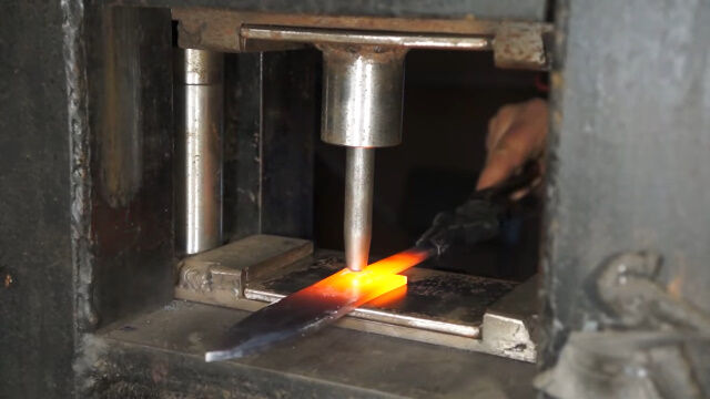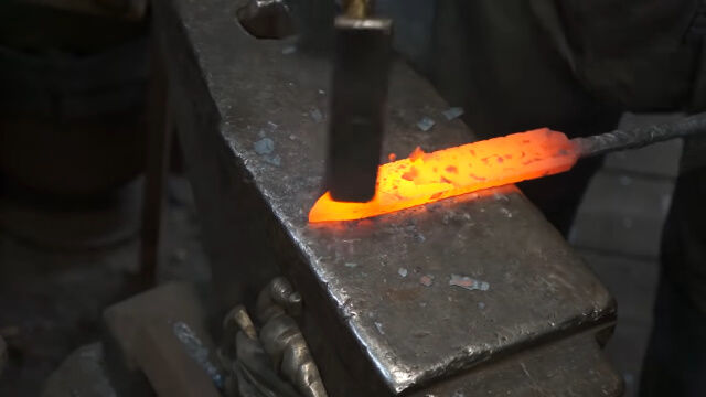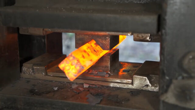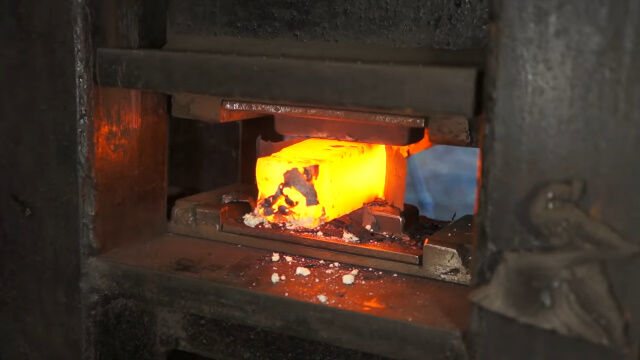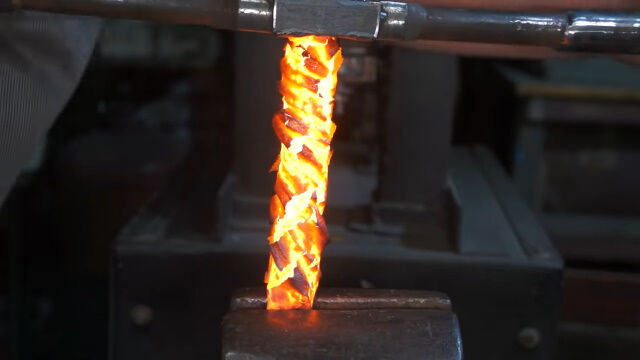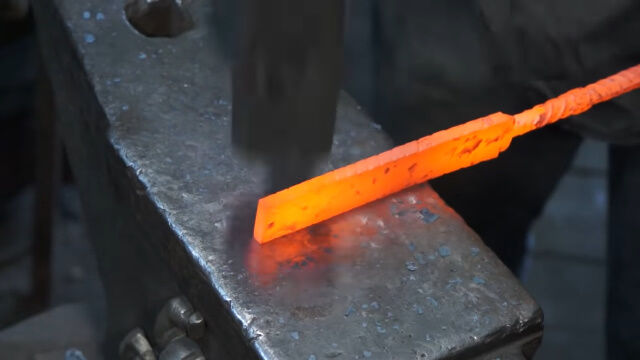何度も繰り返し熱して叩き伸ばし、重ね合わせてまた熱し、叩き伸ばす。