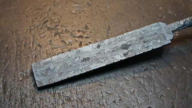 複雑な紋様が美しい。隕石を素材にダマスカス鋼のナイフを作る鍛冶職人