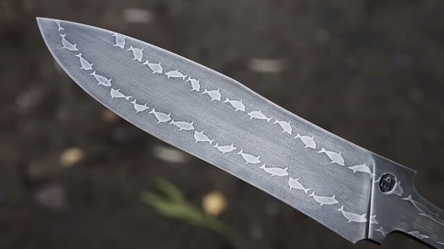 刃の上をイルカが泳ぐナイフを作る鍛冶職人