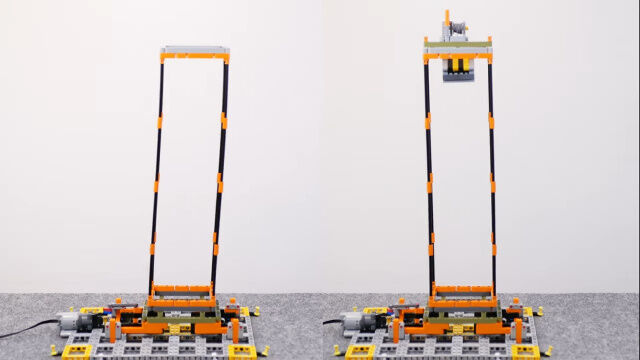 モーターで土台を揺らす仕組みの地震シミュレーターをレゴで製作。