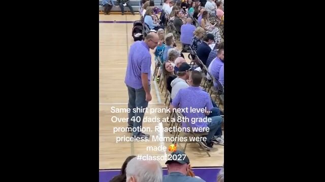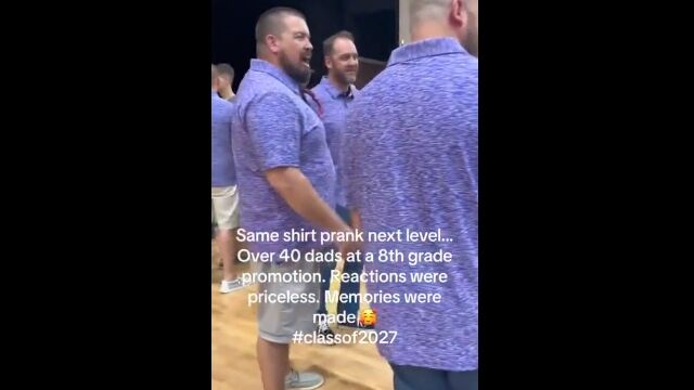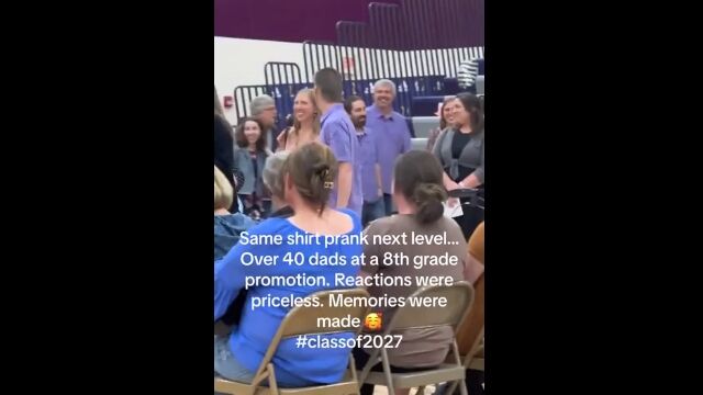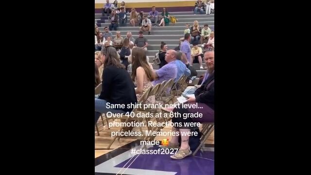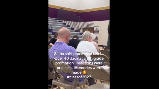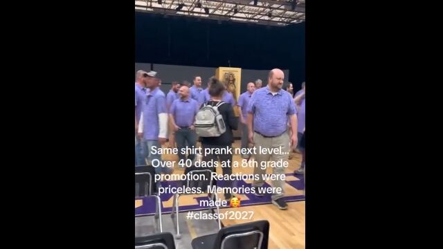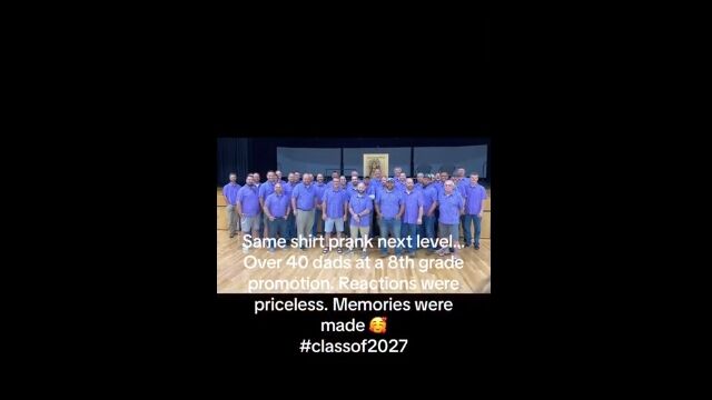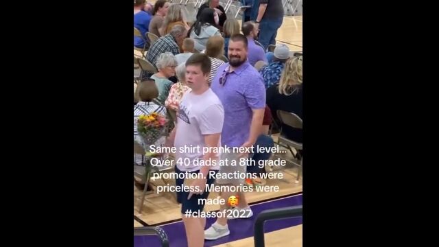 Same shirt prank next level...over 40 dad's at a 8th grade promotion by u/Sufficient-Bug-9112 in BeAmazed