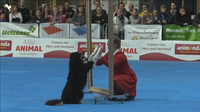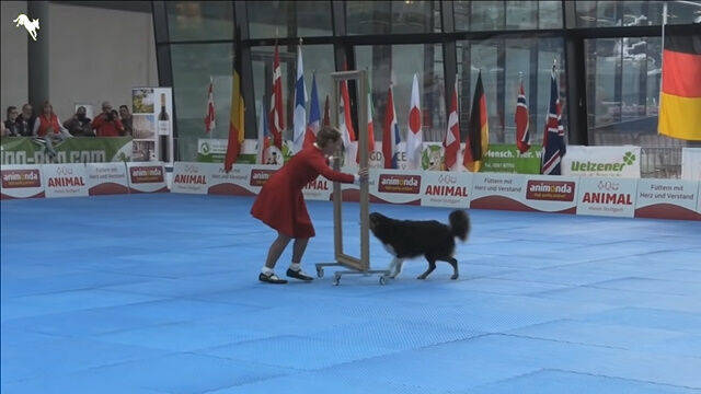 2019年に行われた、FCIドッグダンシング・ワールドチャンピオンシップにて、ジェシー&エルケ・ボクセンによるダンス・パフォーマンス。