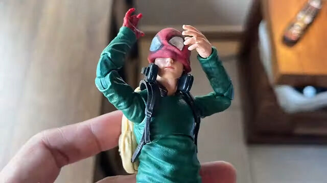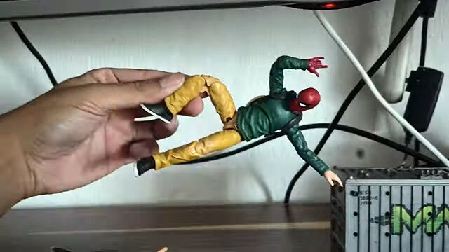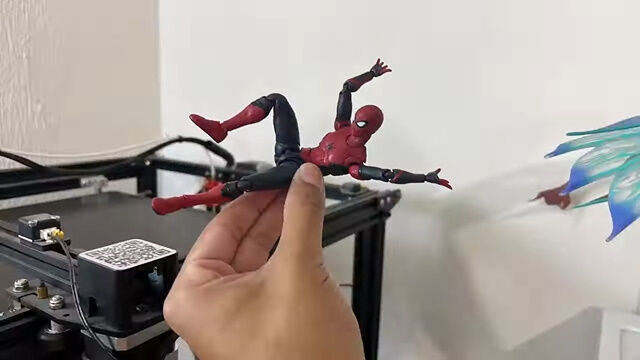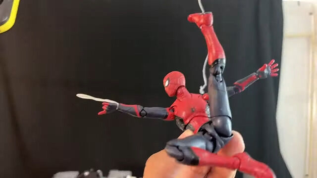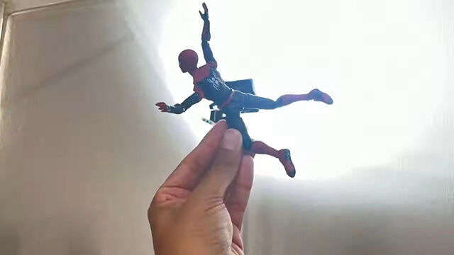 背景はいろいろ配置しているものの、普通の部屋に過ぎないし、スパイダーマンを持った手も編集で消したりしていない。