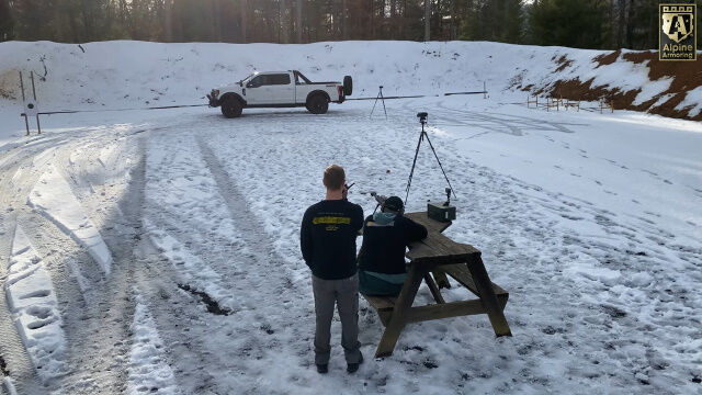 自動車の運転席に人が乗った状態で、高い防弾性能を持つサイドウィンドウを、50口径のライフル弾で狙撃。