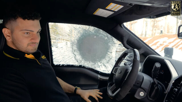 アルパイン・アーマリング社が、特殊車両部門の新商品デモンストレーションとして行った、防弾ガラスの性能をアピールする過激映像。